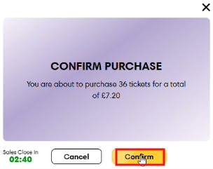 The above shows the countdown timer to when ticket sales close so you know how much time you have to buy your tickets. Ticket purchase for the next game closes 20 seconds before the next game begins.